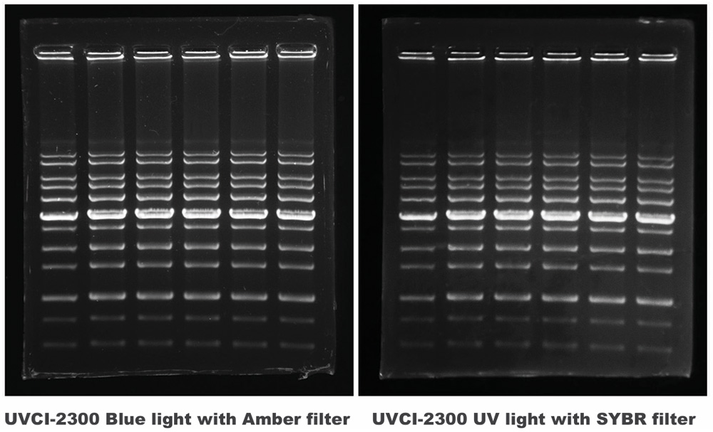 a. Use a UV light or blue light transilluminator for visual observation, and always apply the appropriate and safety filter.